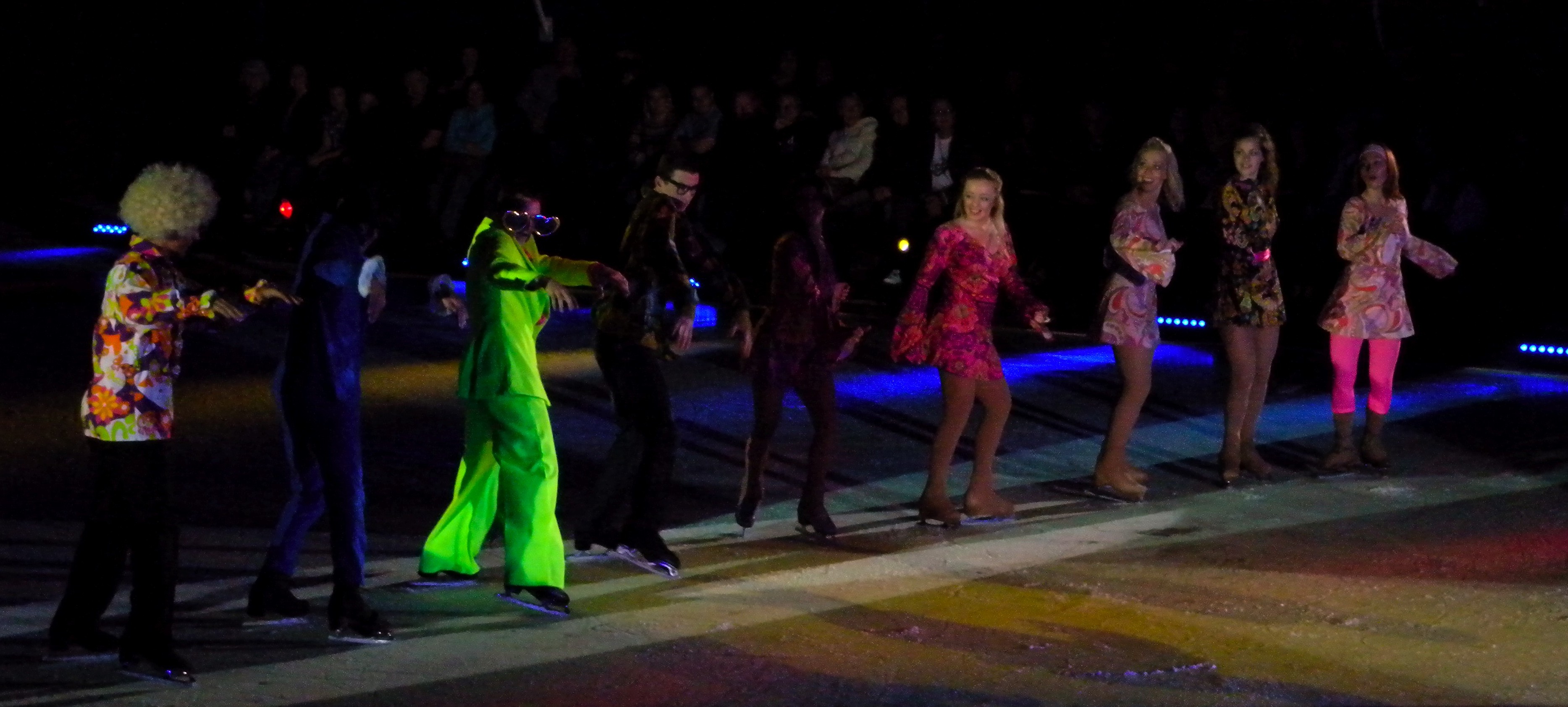 For two IW skaters, however, Ice Party Champions provided more than one moment in the spotlight. Fifteen-year-old Archie Bicknell and 17-year-old Gemma Marsh had a real taste of what it is like to take part in a big budget ice skating show by performing as part of the ensemble skaters right from the opening number. The two performed with the professional cast in a 1960s Austin-Powers themed medley, with Archie kicking off proceedings in a routine involving actress Clare Buckfield to Nancy Sinatra’s These Boots were Made for Walkin’.