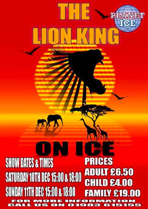 Planet Ice Ryde’s Christmas show this year is The Lion King. There are four shows in total for the public, in addition to the dedicated schools-only shows, on 10 and 11 December at 3pm and 6pm.
