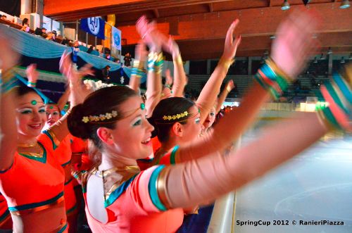 Moments after the Jewels themselves had skated, the main arena lights went out – an event that heralded a catastrophe for the last team to skate, Dandelion of Italy, when the lights failed again in the middle of their programme. To audience applause Dandelion finished their programme in the gloom – they were, however, able to restart the second half of the programme again when the lights were restored.