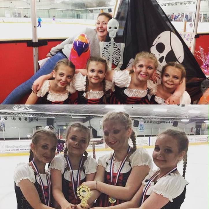 The Pirates: Arwen Rowdon, Eloise Hayward, Ellie and Josie Watts. Coach Terri Smith is pictured top between the parrot and the skeleton